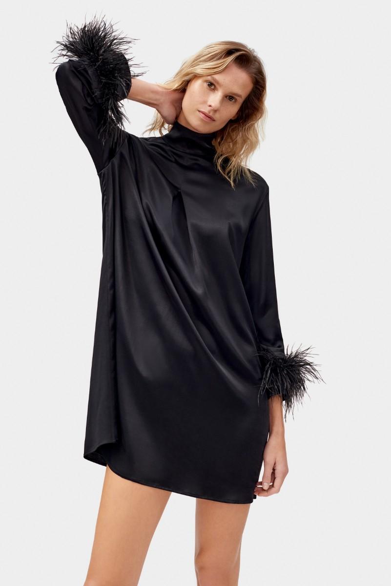 4823115625168 | $350.0 | Auction | THE SLEEPER | SS2302FD | PARTY SHIRT DRESS WITH DETACHABLE FEATHERS IN BLACK / 100% VISCOSE, 100% FEATHERS (OSTRICH) | 1 | BLACK | XS |