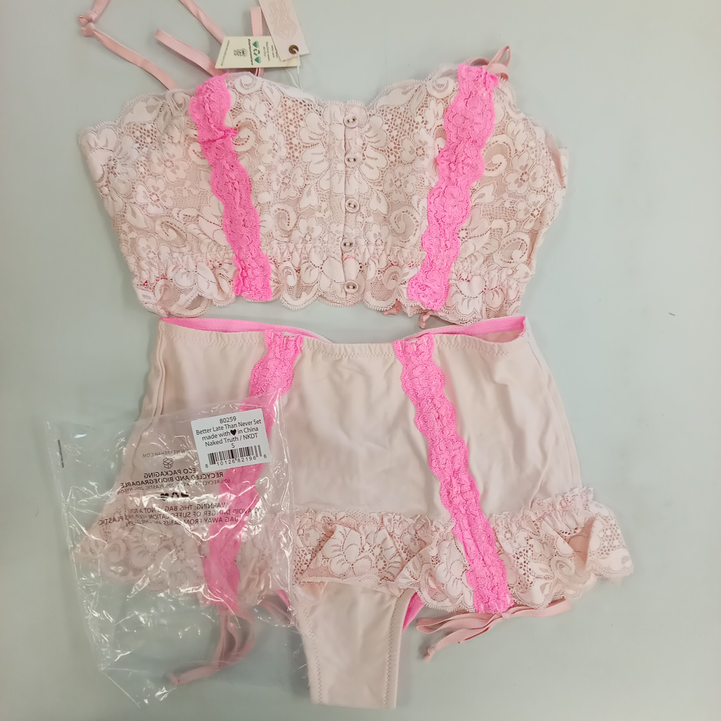 810126821966 | $88.0 | Auction | WE ARE HAH | 80259NKDTS | BETTER LATE THAN NEVER SET | NAKED TRUTH LINGERIE – BODYSUIT | 1 | NAKED TRUTH | S | |